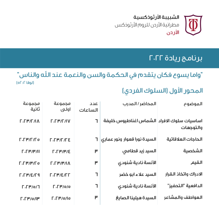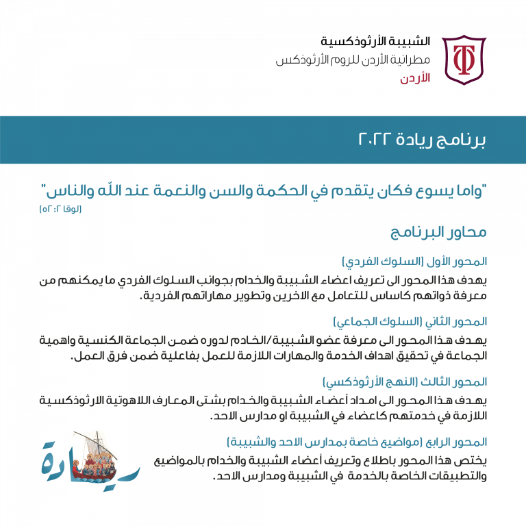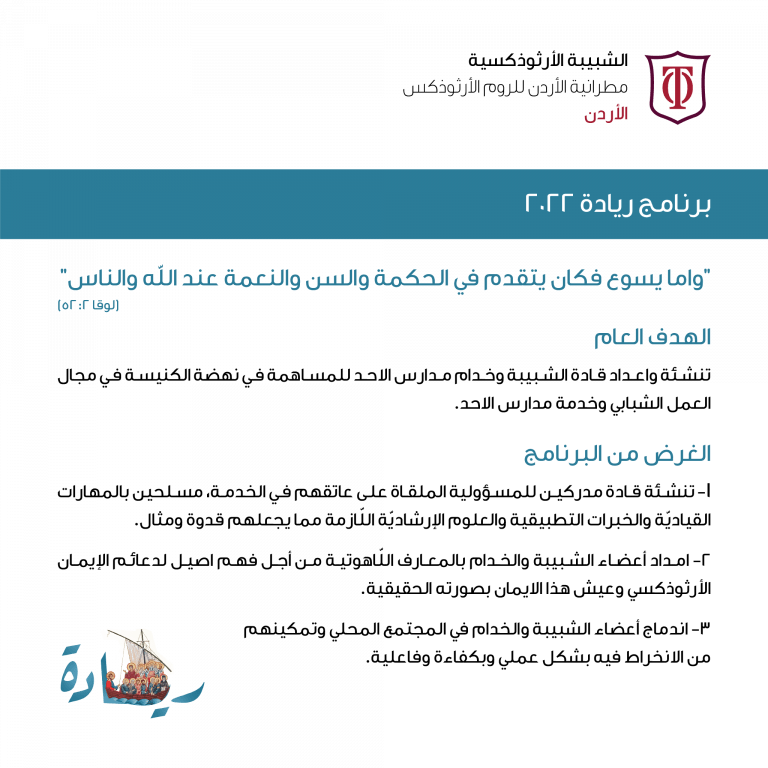 يهدف البرنامج الى تنشئة واعداد “قادة” تخدم مدارس الاحد والشبيبة من خلال امداد المشاركين بالمعارف اللاهوتية وبالمهارات السلوكية اللازمة للخدمة اضافة الى اكسابهم خبرات عملية تطبيقية تمكنهم من المساهمة والانخراط في العمل الكنسي واللقاء مع الاخر “بيسوع ” في خبرة عملية مليئة بالتحديات والتشاركية تساهم في بناء مجتمعهم الكنسي والمحلي